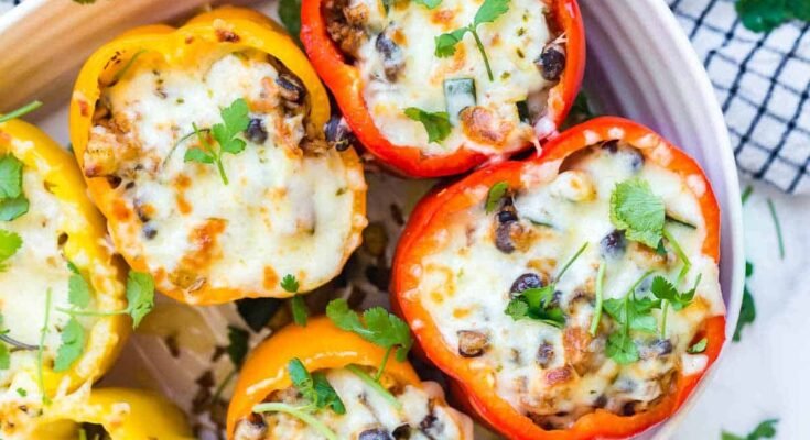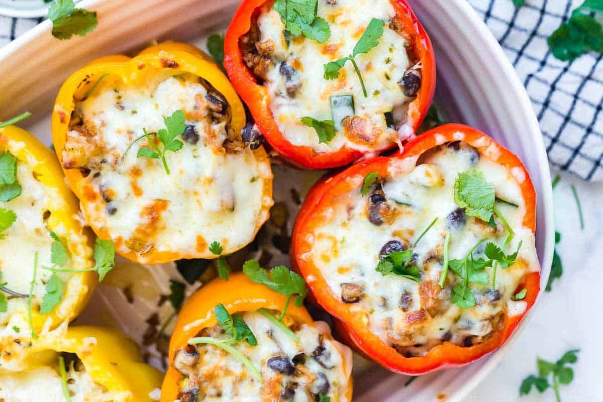 Yes! You can freeze the stuffed peppers before baking them. Wrap them in foil and store in an airtight container. When you’re ready to eat, bake from frozen at 375°F for 40-50 minutes.